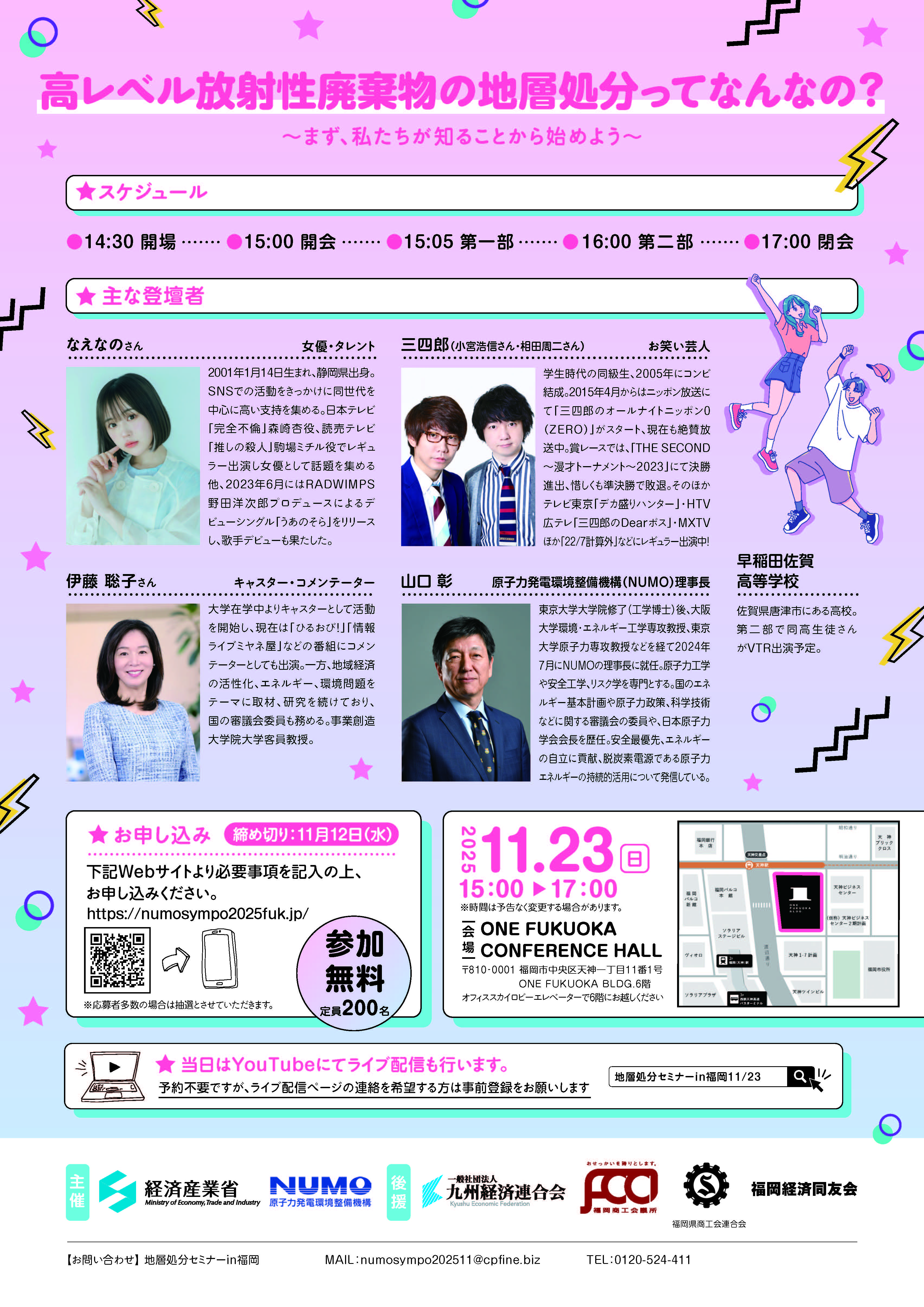 三四郎出演!地層処分セミナーin福岡「高レベル放射性廃棄物の地層処分ってなんなの? ~まず、私たちが知ることから始めよう~」