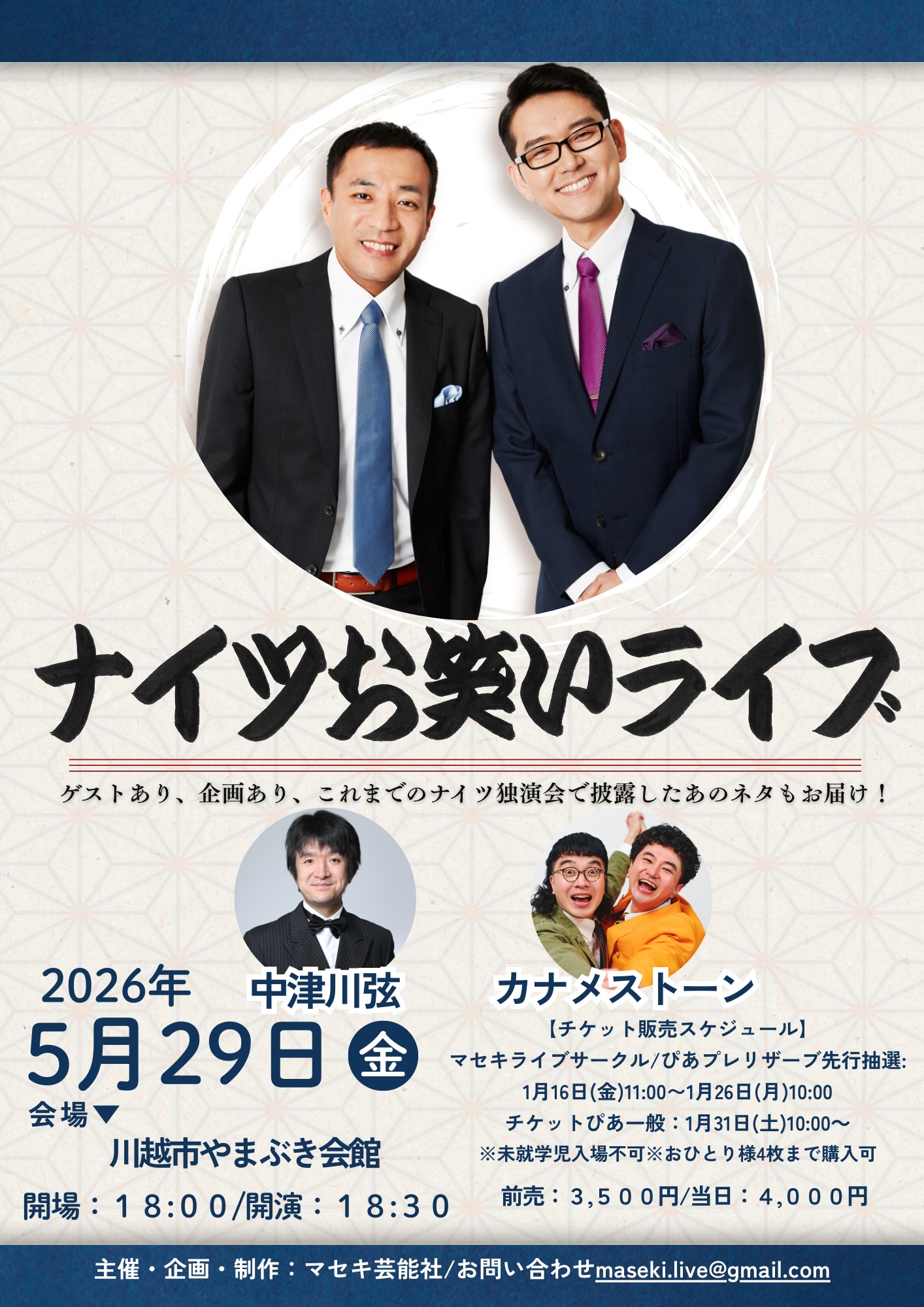 前売3,500円/当日4,000円■マセキライブサークル・チケットぴあプレリザーブ先行抽選