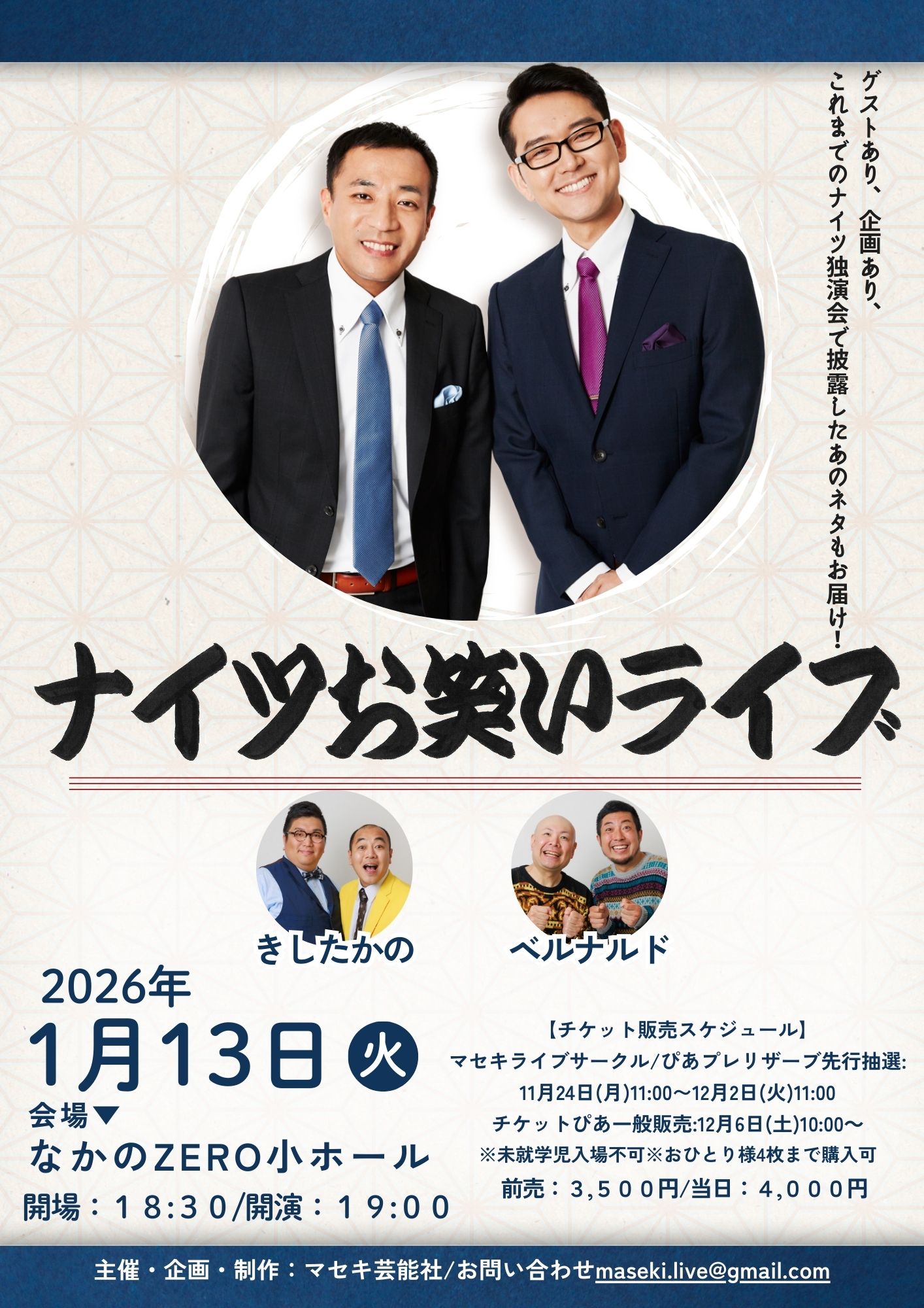 前売3,500円/当日4,000円■マセキライブサークル・チケットぴあプレリザーブ先行抽選