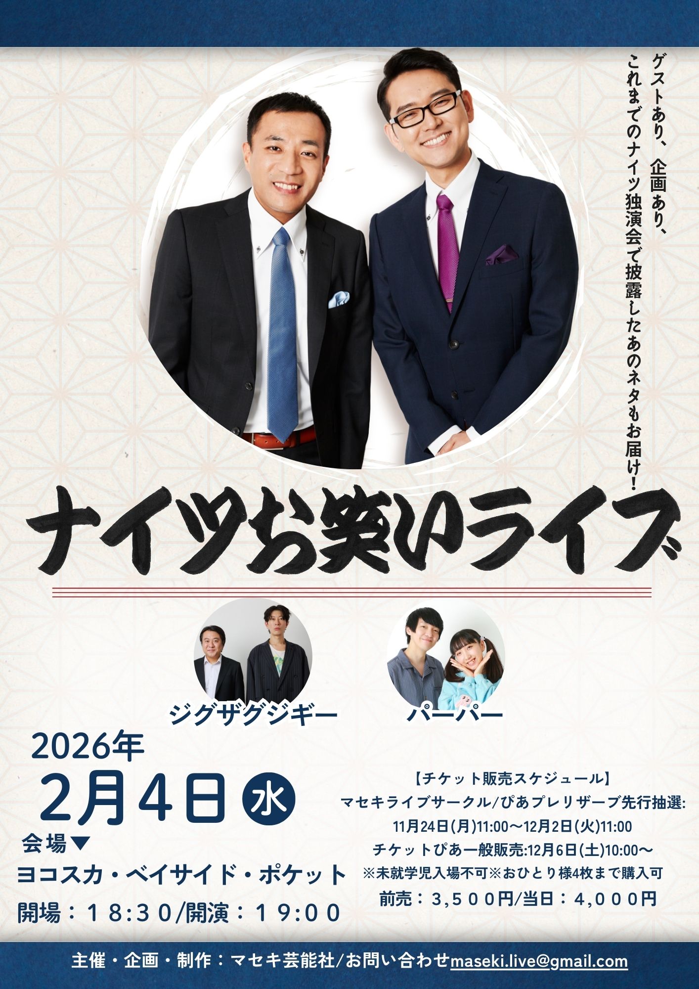 前売3,500円/当日4,000円■マセキライブサークル・チケットぴあプレリザーブ先行抽選